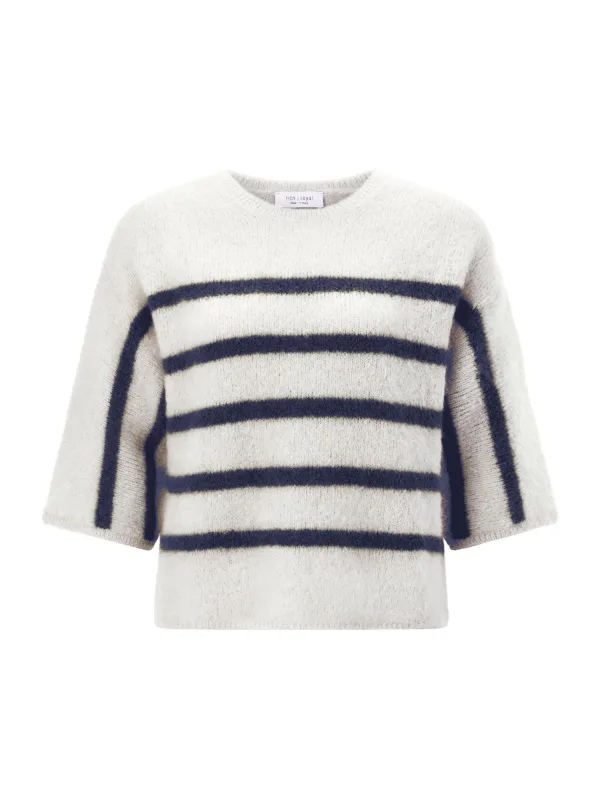Design: Geribbelde kraag, Rechte zoom; Materiaal: Knitwear; Halstype: Ronde hals; Motief: Gestreept; Extra's: All-over patroon, Voelt zacht aan; Pasvorm: Losse pasvorm; Armlengte: Driekwart mouw; Lengte: Normale lengte
