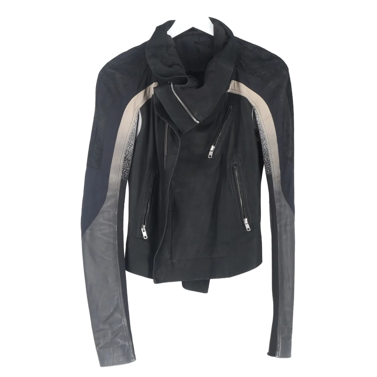 | Prijsgeschiedenis voor Rick Owens Eliel Paneled Cropped Biker Jacket in Black Leather | |