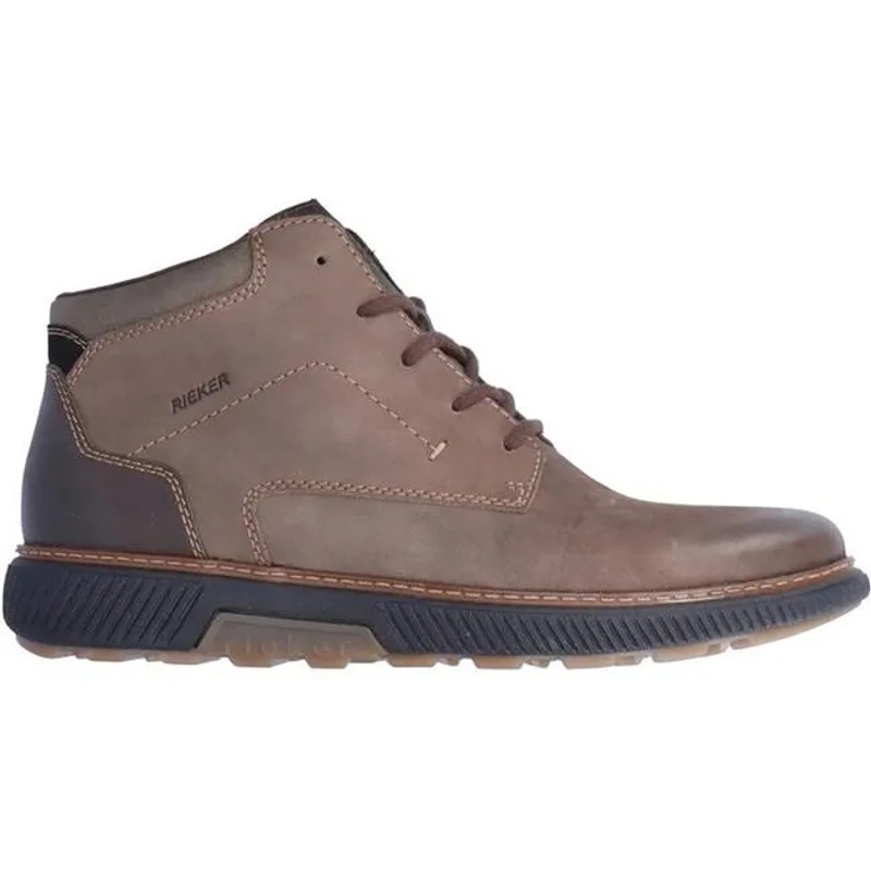 Rieker op Topshoe.nl Haflhoge schoenen van het topmerk Rieker. Dit model heeft een rits- en een vetersluiting. Doordat het voetbed uitneembaar is, kunnen ook eigen inlegzolen gedragen worden. Dit extra vrede model van Rieker, artikelnummer B3308