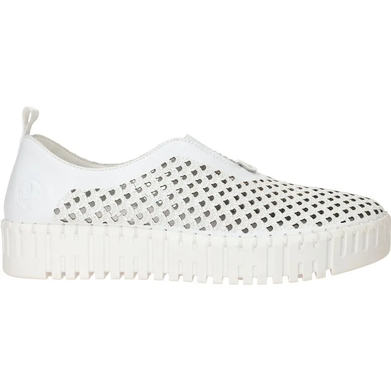 Deze Rieker Instappers zijn voor Dames in de kleur Wit. De schoenen zijn gemaakt van het materiaal Kunstleer en de voering is gemaakt van . De voetbreedte van de schoenen is H - breed.