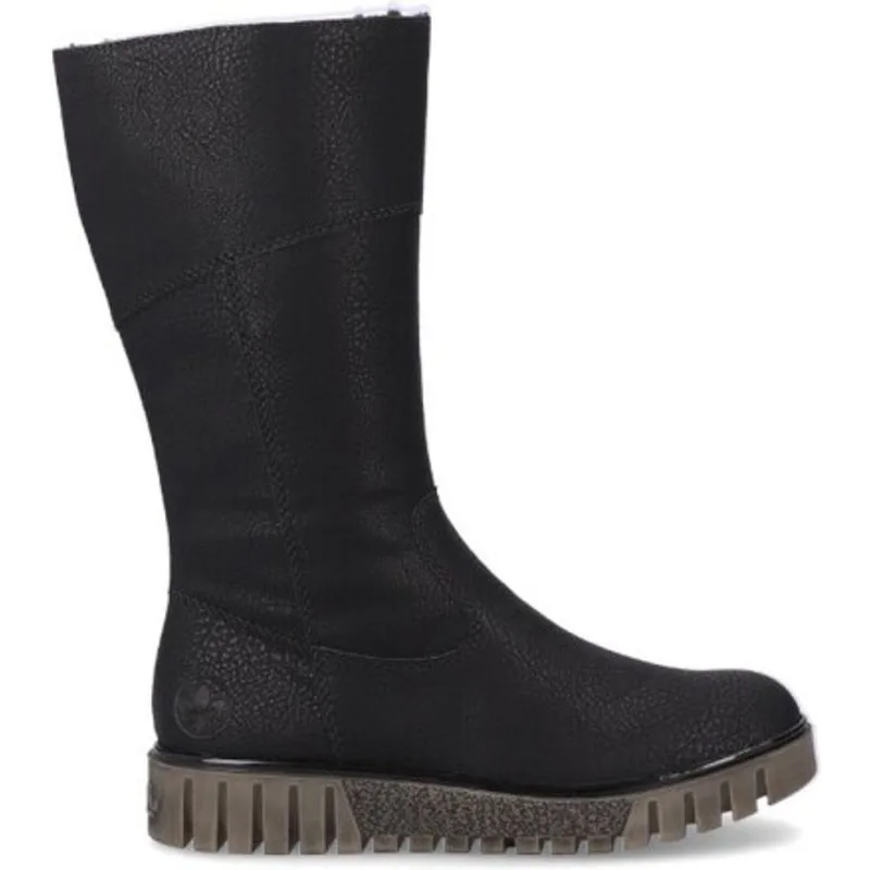Artikel Y3455 in kleur 00-Zwart-Schwarz is een prachtige zwarte laars, voor dames, van het merk Rieker. De zool is van rubber. De voering is imitatie bont. De voetwijdte is standaard. Rieker is opgericht in 1874 in zuid Duitsland en was gelijk al een zeer succesvol merk. Inmiddels is het merk uitgegroeid tot een enorme schoenenfabrikant met het hoofdkantoor in Zwitserland. De schoenen staan bekend om het lichte gewicht, de flexibiliteit, de optimale schokdemping en hebben voldoende ruimte voor de tenen. Met de ruime collectie van schoenen en tassen speelt Rieker snel in op de mode trends van dit moment.