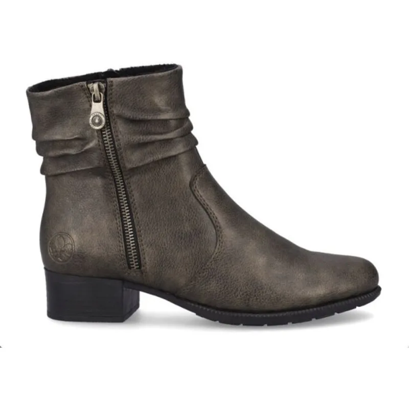 Artikel 78656 in kleur 90-Antik-Metallic is een prachtige bruine laars, voor dames, van het merk Rieker. De zool is van rubber. De voering is textiel. De voetwijdte is standaard. Rieker is opgericht in 1874 in zuid Duitsland en was gelijk al een zeer succesvol merk. Inmiddels is het merk uitgegroeid tot een enorme schoenenfabrikant met het hoofdkantoor in Zwitserland. De schoenen staan bekend om het lichte gewicht, de flexibiliteit, de optimale schokdemping en hebben voldoende ruimte voor de tenen. Met de ruime collectie van schoenen en tassen speelt Rieker snel in op de mode trends van dit moment.