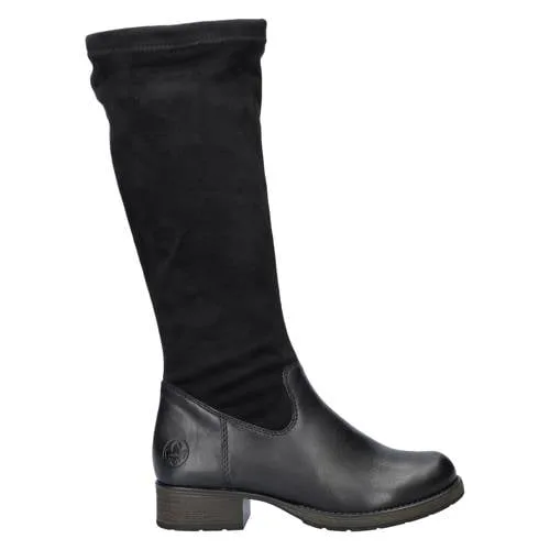 Deze Rieker hoge laars is gemaakt van leer en textiel. De voering bestaat uit imitatiebont. Met ritssluiting en hak, geschikt voor dames. Voorzien van een leest.