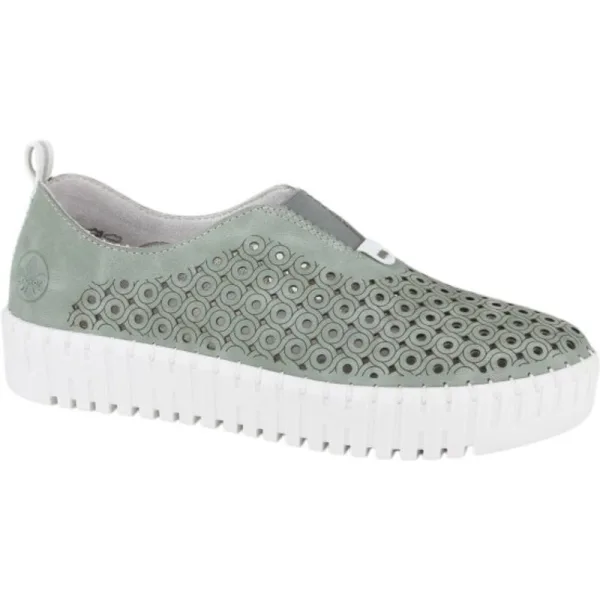 Rieker M8350-52 instappers sportief dames in de kleur groen materiaal imitatieleer maat 37 binnenvoering Textiel materiaal zool Rubber