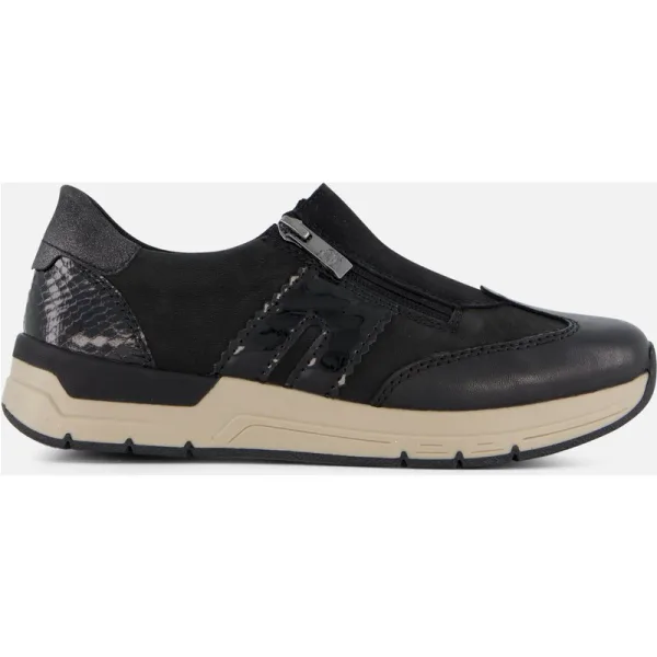 Deze Rieker instappers hebben een synthetisch bovenwerk en een voering van textiel en leer. De instappers hebben een touch-it binnenzool en een smallere pasvorm (F 1/2 Leest). De antislipzool is gemaakt van rubber en heeft een hakhoogte van 2 centimeter.