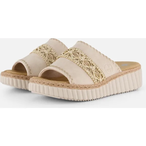 Deze Rieker Slippers zijn voor Dames in de kleur Beige. De schoenen zijn gemaakt van het materiaal Kunstleer en de voering is gemaakt van . De voetbreedte van de schoenen is H - breed.