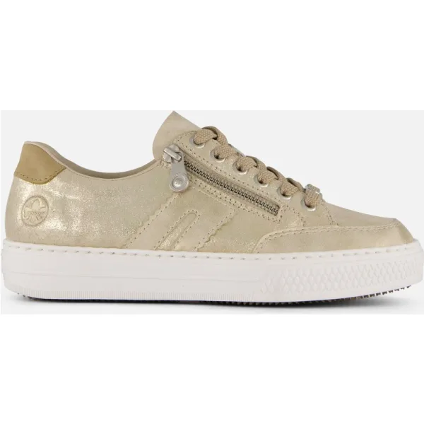 Rieker op onze webshop. Schoenen van het topmerk Rieker. De L5903 62 van Rieker is een echte blikvanger. De L5903 62 is uitgevoerd in de kleur Goud. Dit model heeft een rits- en een vetersluiting. Deze schoenen van Rieker, artikelnummer L5903, bestel je gemakkelijk op onze webshop.