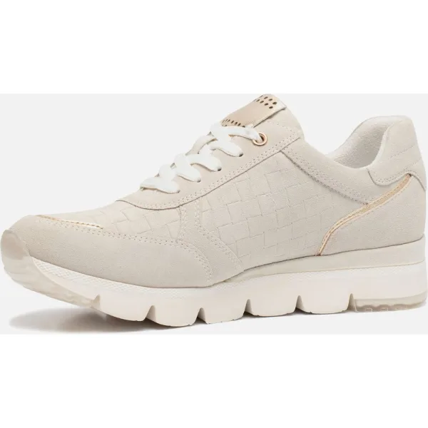 Deze beige Cellini sneakers zijn zomerse schoenen met een leuk motief. Het bovenwerk van deze schoenen is gemaakt van suède. Op de schoen zijn verschillende opdrukken en inzetten te vinden, zoals het geruite motief aan de zijkanten. De schoenen zijn voorzien van een textiele voering en een leren binnenzool, wat zorgt voor een stevig maar zacht gevoel aan de voeten. De schoenen zijn voorzien van een vetersluiting waarmee het aan- en uittrekken erg makkelijk gaat. De zool is gemaakt van rubber en is 3 centimeter dik. Let op: het voetbed van deze schoenen is uitneembaar!