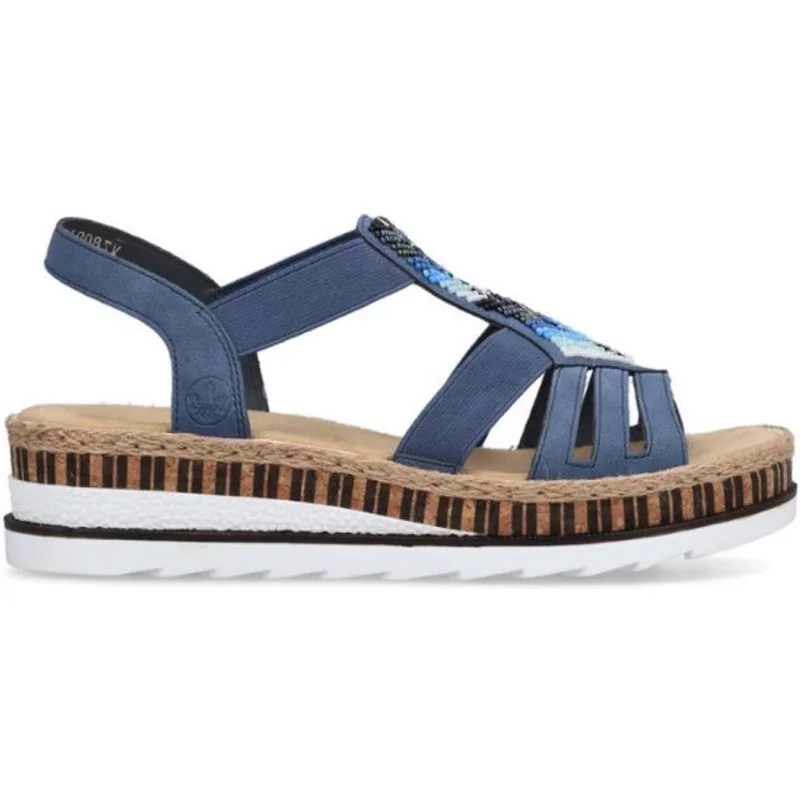 Artikel V7909 in kleur 12-Tinte is een prachtige blauwe sandaal, voor dames, van het merk Rieker. De zool is van rubber. De voering is imitatie leer. De voetwijdte is standaard. Rieker is opgericht in 1874 in zuid Duitsland en was gelijk al een zeer succesvol merk. Inmiddels is het merk uitgegroeid tot een enorme schoenenfabrikant met het hoofdkantoor in Zwitserland. De schoenen staan bekend om het lichte gewicht, de flexibiliteit, de optimale schokdemping en hebben voldoende ruimte voor de tenen. Met de ruime collectie van schoenen en tassen speelt Rieker snel in op de mode trends van dit moment.