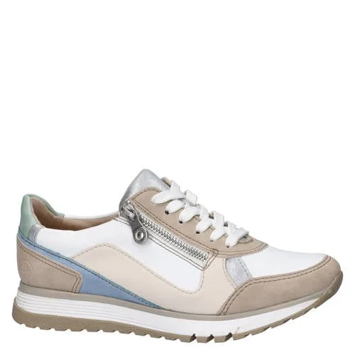 Zoek je een schoen die een verzorgde uitstraling heeft en de hele dag ondersteuning biedt, dan kan de Rieker dames sneaker een praktische keuze zijn. Deze sneaker combineert een sportieve look met slimme details voor extra comfort. De buitenkant van imitatieleer zorgt voor een nette uitstraling, terwijl de combinatie van rits en vetersluiting ervoor zorgt dat de schoen zowel goed aansluit als snel aan en uit gaat.Zachte steun bij elke stap Handige rits- en vetersluiting zodat de pasvorm eenvoudig aan te passen is. Textielen voering die zacht aanvoelt en bijdraagt aan een comfortabel draaggevoel. Rieker Antistress-voetbed met leren bovenlaag voor aangename vocht- en warmteregulatie. Voetbed met fijne demping en lichte ondersteuning van de voetboog. Flexibele rubberen loopzool die de natuurlijke afwikkeling van de voet volgt. H-leest, geschikt voor een normale tot bredere voet. Platte zool voor stabiel en ontspannen lopen.Elke dag draagbaar comfortDe sneaker past bij veel outfits en is door de meerkleurige print eenvoudig te combineren met je dagelijkse garderobe. Geschikt voor lange werkdagen, een dagje winkelen of een wandeling door de stad, doordat de zool licht meebeweegt en het voetbed de druk onder je voeten verzacht.Rieker, specialist in comfortabel schoeiselRieker ontwikkelt schoenen met aandacht voor licht gewicht, flexibiliteit en bewegingsvrijheid. De Antistress-technologie is daarop afgestemd, zodat je voeten minder snel vermoeid raken. Met deze sneaker haal je een betrouwbare basis in huis waar je veel en vaak op kunt lopen.Een comfortabele, moderne sneaker die je tijdens drukke dagen prettig ondersteunt.