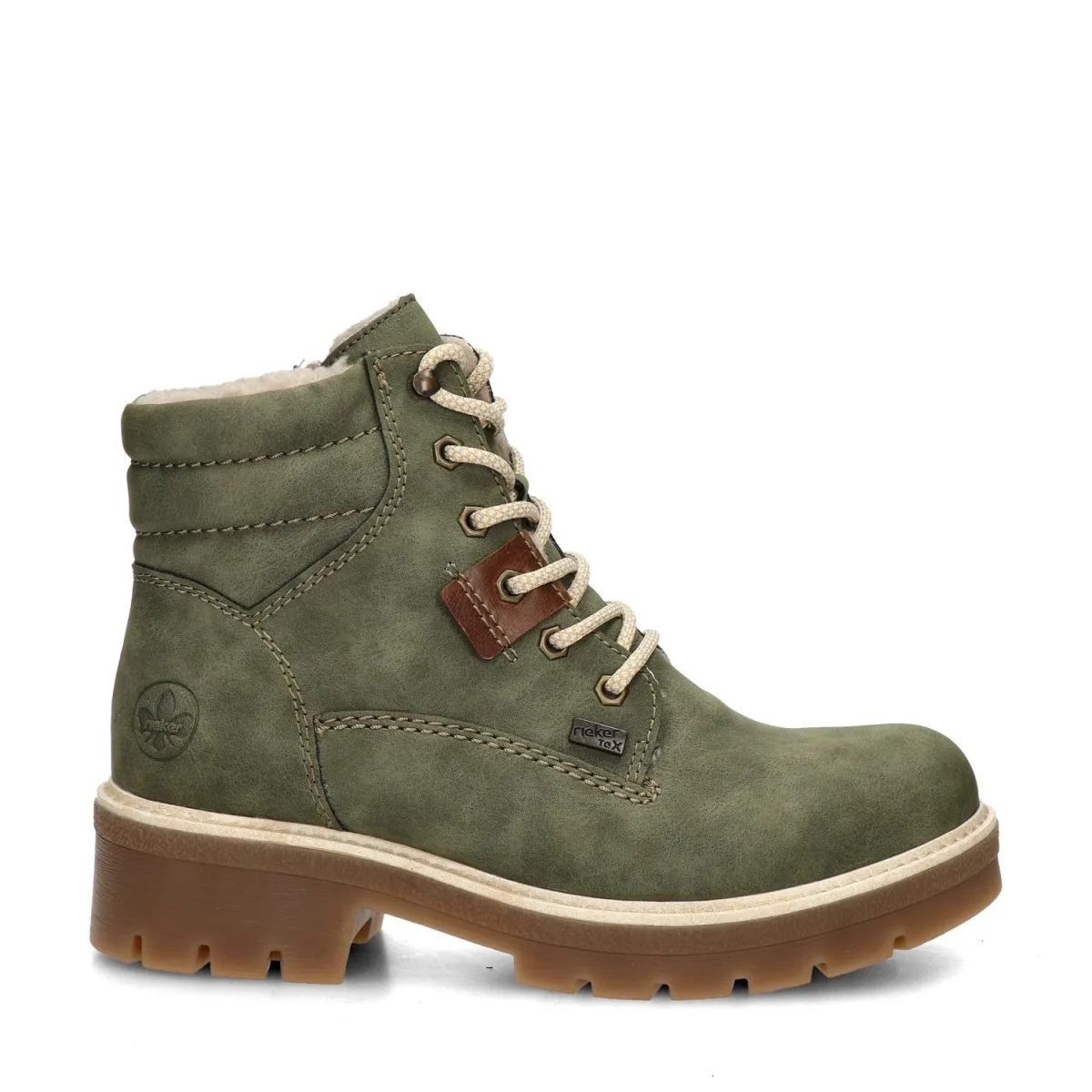 Rieker dames veterboot Een stevige boot die comfortabel en stijvol is. Draag deze Rieker boot bij je favoriete jeans of stoere rok. Uitgevoerd in imitatieleer. Door de speciale behandeling van het materiaal is deze beter bestand tegen water. Gevoerd met teddystof wat de voeten heerlijk warm houdt en een comfortabel draaggevoel biedt. voorzien van Rieker's Antistress voetbed voor langdurige demping en lichte ondersteuning aan de voetboog. Het voetbed is tevens uitneembaar waardoor eigen zolen ook gedragen kunnen worden. Afgewerkt met een rubberen loopzool met stevig profiel en goede grip.