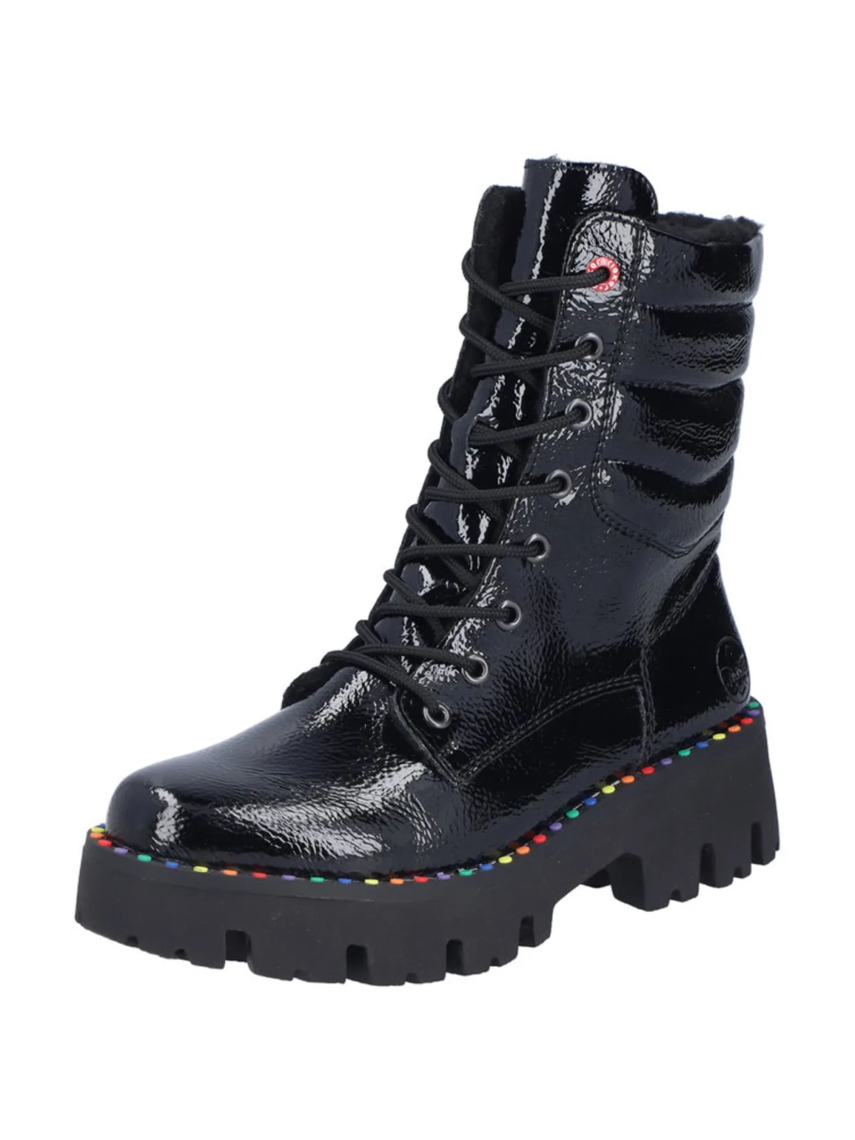 Design: Ritszakken aan de zijkant, Profielzolen, Versterkte hak, Contrasterende inserts, Vetering met 8 gaten; Type sluiting: Snoersluiting; Type hak: Blokhak; Materiaal: Leer; Motief: Effen; Plateau: Met plateau; Materiaal: Kunststof/rubber, Glad leer, Lak; Schoenneus: Ronde neus; Extra's: Glanzend, Label preegdruk, Flexibele zool, Metalen oogjes; Voering: Warm gevoerd; Hakhoogte: Middelhoge hak (3-7 cm)