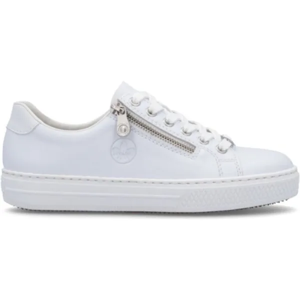 Artikel L59L1 in kleur 83-Sportweiss-Weiss is een prachtige witte veterschoen, voor dames, van het merk Rieker. De zool is van rubber. De voering is textiel. De voetwijdte is standaard. Deze veterschoen is voorzien van een uitneembaar voetbed. Rieker is opgericht in 1874 in zuid Duitsland en was gelijk al een zeer succesvol merk. Inmiddels is het merk uitgegroeid tot een enorme schoenenfabrikant met het hoofdkantoor in Zwitserland. De schoenen staan bekend om het lichte gewicht, de flexibiliteit, de optimale schokdemping en hebben voldoende ruimte voor de tenen. Met de ruime collectie van schoenen en tassen speelt Rieker snel in op de mode trends van dit moment.
