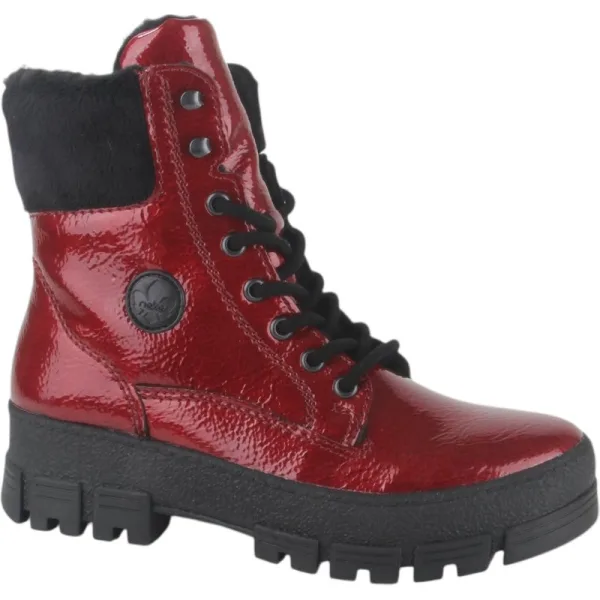 Rieker Y0220-33 veterboots sportief dames in de kleur rood materiaal lak maat 37 binnenvoering Textiel materiaal zool Rubber