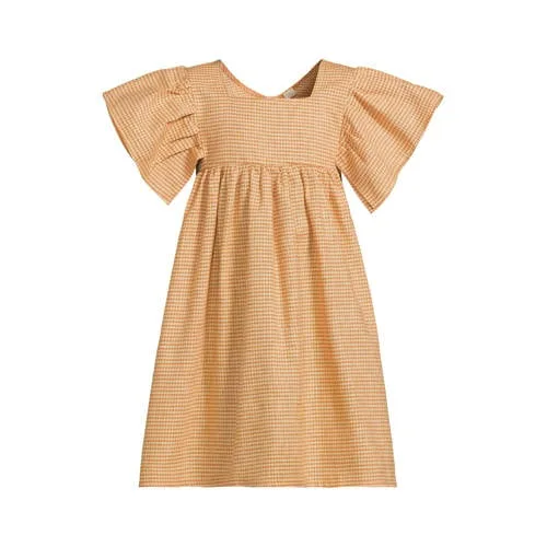 Deze luchtige bruine meisjes jurk van katoen en linnen van Riffle Amsterdam is een geschikte keuze voor elke dag. De warme bruintint met subtiele ruit geeft een rustige, moderne look, terwijl de vierkante hals en wijde mouwen zorgen voor een speelse uitstraling. Door de korte lengte kan je kind zich vrij bewegen, of het nu kruipen, rennen of spelen in de tuin is.Luchtige stof met ruitdetail Gemaakt van 70% katoen / 30% linnen, voelt zacht en luchtig aan op de huid Bruine kleur met ruitprint voor een rustige, tijdloze uitstraling Vierkante hals en wijde korte mouwen voor een moderne, comfortabele pasvorm Plooien zorgen voor extra ruimte en een mooi vallend silhouet Knoopsluiting maakt aan- en uittrekken eenvoudig Geen zakken, waardoor de jurk soepel en licht blijft Geschikt voor baby, New Born, peuter en kleuter en schoolkind Wasbaar op 30 graden, fijn voor dagelijks gebruikComfortabel in bewegingDeze korte jurk valt soepel om het lijf, zodat je kind makkelijk kan bewegen tijdens spelen en ontdekken. De luchtige stof maakt de jurk geschikt voor warmere dagen, eventueel met een vest eroverheen als het frisser is.Riffle Amsterdam voor stijlvolle kidsRiffle Amsterdam ontwerpt kinderkleding met aandacht voor fijne stoffen en doordachte details. De modellen sluiten aan bij het dagelijks leven van kinderen, zodat ze zich vrij kunnen bewegen en de kleding prettig dragen.Een praktische basisjurk voor gewone schooldagen en familiedagen.