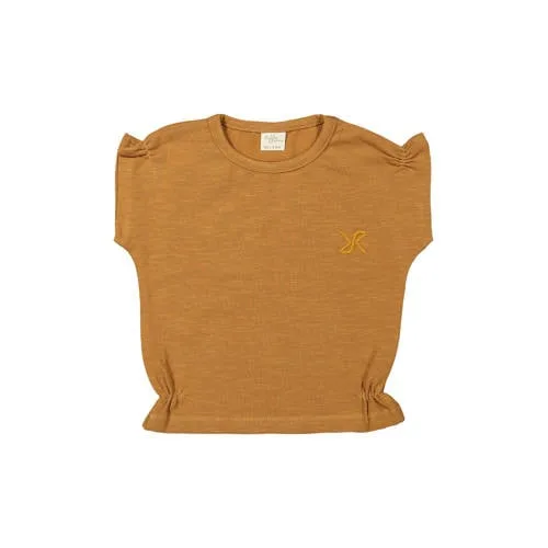 Dit bruine meisjes T-shirt met kapmouw van Riffle Amsterdam is een fijne basic voor elke dag. Het effen ontwerp is rustig en tijdloos, terwijl de subtiele plooitjes en kapmouwen zorgen voor een speelse look. Door de combinatie van katoen met een beetje elastaan voelt de stof zacht en soepel aan en blijft het T-shirt mooi in vorm, ook na meerdere wasbeurten.Comfortabele basic met mooie details Gemaakt van 95% katoen en 5% elastaan voor een zachte stof met lichte stretch Kapmouwen geven extra bewegingsvrijheid rond de schouders Ronde hals voor een comfortabele pasvorm bij de hals Effen bruine kleur die makkelijk te combineren is met broeken, rokjes en leggings Subtiele plooien aan de voorkant voor een verzorgd effect Geschikt voor peuters, kleuters en schoolkinderen Wasbaar op 30 graden, praktisch in het dagelijkse wasritmeIdeaal voor schooldagen en speelafsprakenDit T-shirt past goed bij de dagelijkse garderobe. Het is handig voor schooldagen, speelafspraken of gewoon thuis. Door de stretch beweegt het makkelijk mee, of je kind nu klimt, rent of aan tafel zit. De neutrale kleur combineert eenvoudig met favoriete items uit de kast.Riffle Amsterdam: eigentijdse kinderkledingRiffle Amsterdam ontwerpt kinderkleding met oog voor comfort en een moderne uitstraling. De items sluiten aan bij het dagelijkse leven van kinderen, met stoffen die prettig aanvoelen en details die net even anders zijn. Zo ontstaat een garderobe die zowel praktisch als verzorgd is.Een veelzijdig T-shirt dat snel een vaste plek krijgt in de kast.