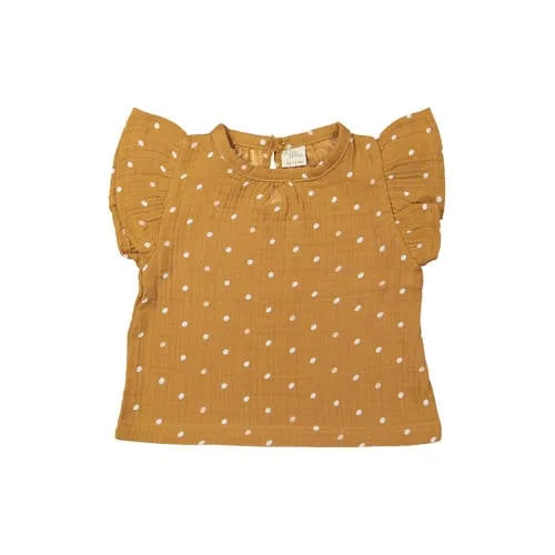 Met dit Riffle Amsterdam meisjes T-shirt met korte mouw krijgt de kledingkast van je kind een zachte basic met een speelse twist. De camel met witte stippen geeft een rustige, maar toch vrolijke uitstraling en de ruches op de schouders zorgen voor een lieve, verfijnde look. Gemaakt van 100% katoen, fijn voor de gevoelige huid van baby’s en kinderen.Zachte details voor elke dag Gemaakt van 100% katoen, voelt zacht en comfortabel aan op de huid Camel/witte stippenprint voor een rustige, speelse uitstraling Kapmouwtjes met ruches voor een verfijnd en eigentijds detail Praktische drukknoopsluiting bij de hals voor eenvoudig aan- en uittrekken Geschikt voor baby, new born, peuter, kleuter en schoolkind Wasbaar op 30 graden, gemakkelijk in het onderhoudComfortabel T-shirt voor dagelijks draagplezierDit T-shirt komt uit de daily collectie en is ideaal voor alledaagse momenten, van thuis op de bank tot een dag op school. De soepele stof geeft voldoende bewegingsvrijheid tijdens spelen en ontdekken. Door de co-ord set optie is het eenvoudig te combineren met een bijpassend kledingstuk uit dezelfde lijn.Riffle Amsterdam: kinderkleding met aandachtRiffle Amsterdam ontwerpt kinderkleding met oog voor comfort, stijl en draagbaarheid. De collecties zijn afgestemd op het dagelijkse leven van kinderen, met zachte materialen, doordachte details en kleuren die gemakkelijk te combineren zijn. Zo kun je keer op keer kiezen voor kleding waarin je kind zich vrij kan bewegen en er verzorgd uitziet.Een fijne, zachte basic met speelse details waar je kind elke dag plezier van heeft.