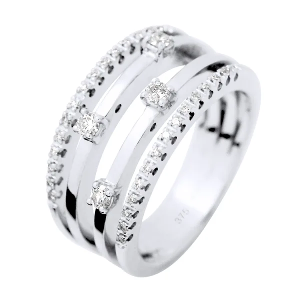 Diamond Ring 0,32 Cts (4 x 0,02 + 48 x 0.005 CTS) - Quality HSI (kleur H - Quality Si1) - Sieraden White Gold 375 duizendste - Beschikbare grootte 48-62 - 2 jaar garantie op fabricagefouten - Wordt geleverd in een zaak met een certificaat van echtheid en een internationale garantie - zijn Al onze sieraden gemaakt in Frankrijk.