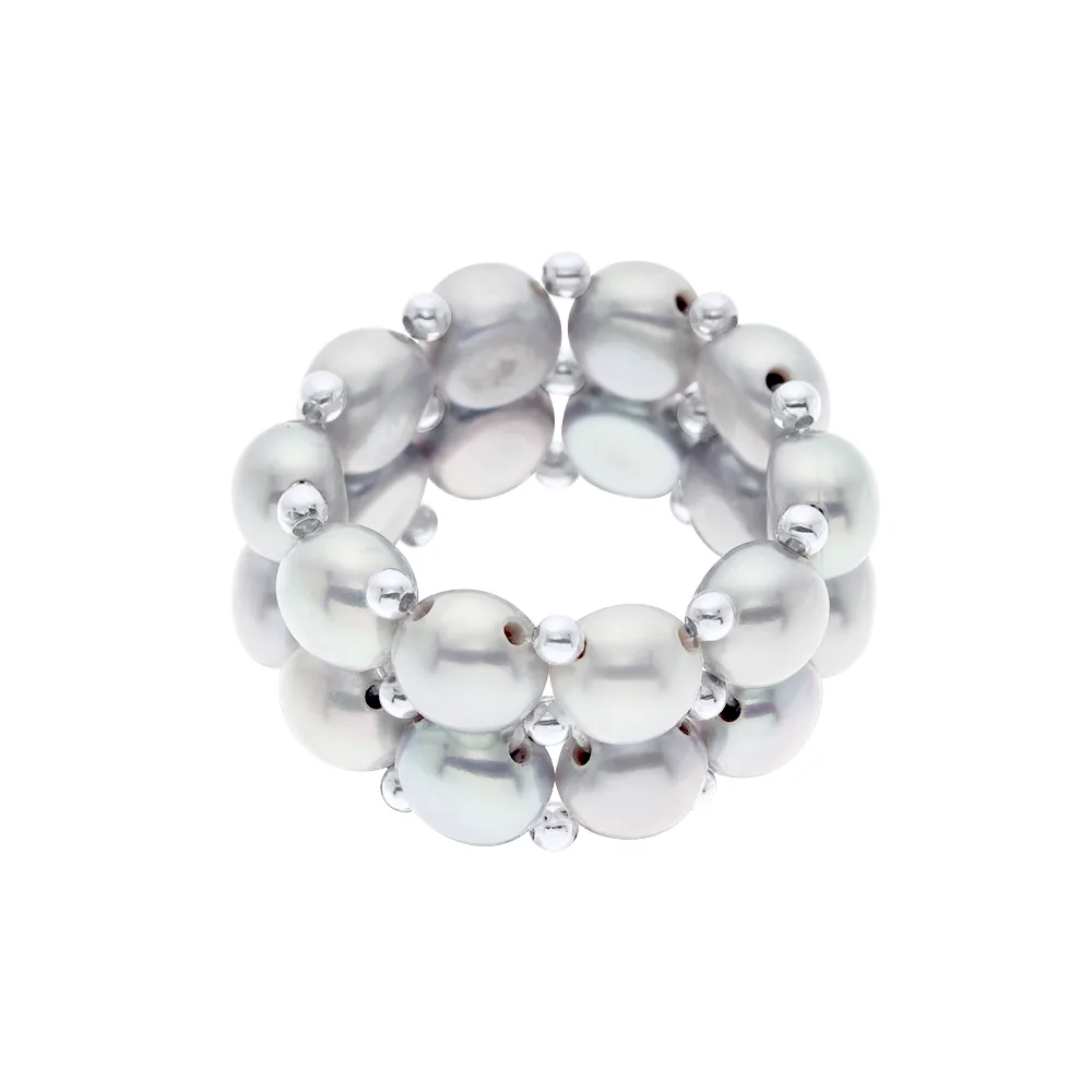 Ring 2 Rijen - HANDGEMAAKT - van Echte Zoetwaterparels - KLEUR PEARL GREY NATUURLIJKE PAREL - 4 mm - Vergrootbaar van maat 48 tot 62 - Geleverd met Certificaat