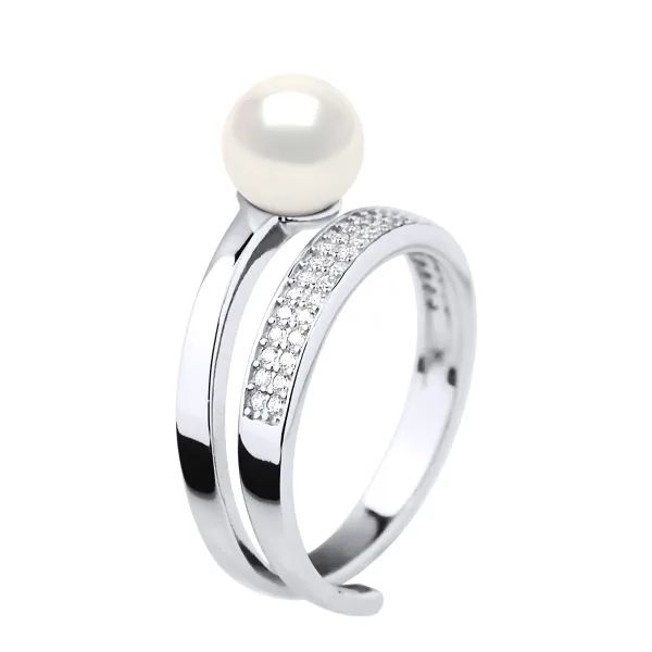 Ring Rush Echte zoetwaterparels ronde 7-8 mm - Quality AAAA + - COLORI NATURAL WHITE - effenen zirkoonoxide - Verstelbare vanaf maat 48 Grootte 62-925 duizendste rhodium - 2 jaar garantie op fabricagefouten - geleverd in een presentatiekoffer met certificaat van echtheid en een Internationale Garantie - Al onze juwelen zijn gemaakt in Frankrijk.
