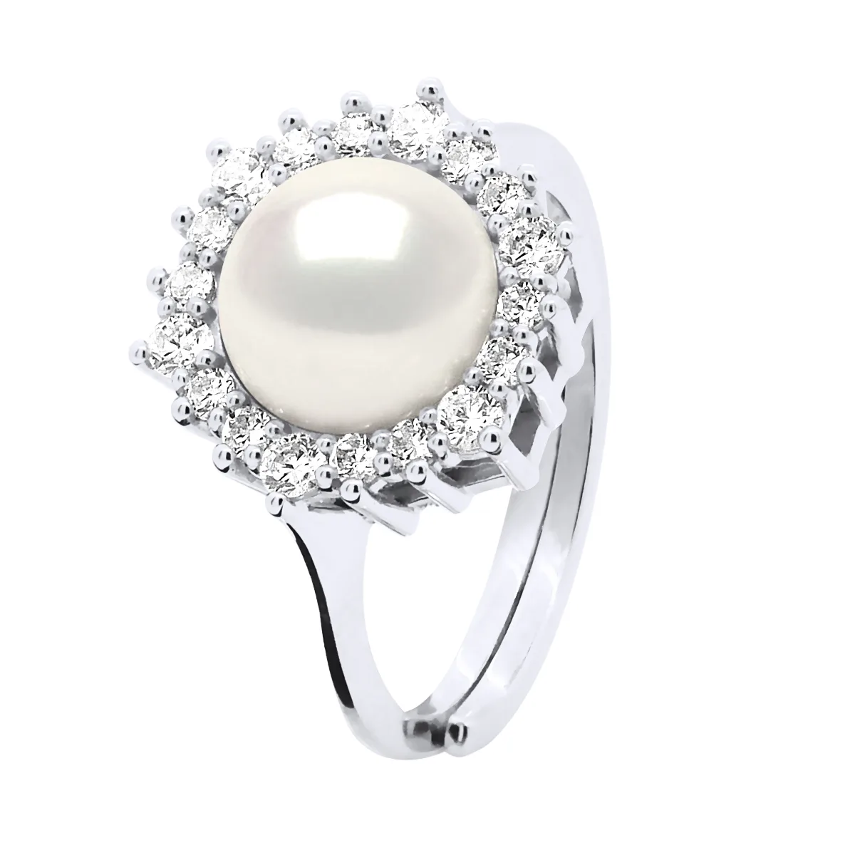 Ring Sieraden - Echte Gecultiveerde Zoetwaterparel Rond 8-9 mm - Sieraad Solitaire Cubic Zirconia - Zilver 925 Rhodium gecoat - KLEUR NATUURLIJK WIT - Verstelbare maat van maat 48 tot maat 62 - Geleverd in een doos en met zijn Certificaat van Echtheid en Internationale Garantie - GEMAAKT IN FRANKRIJK