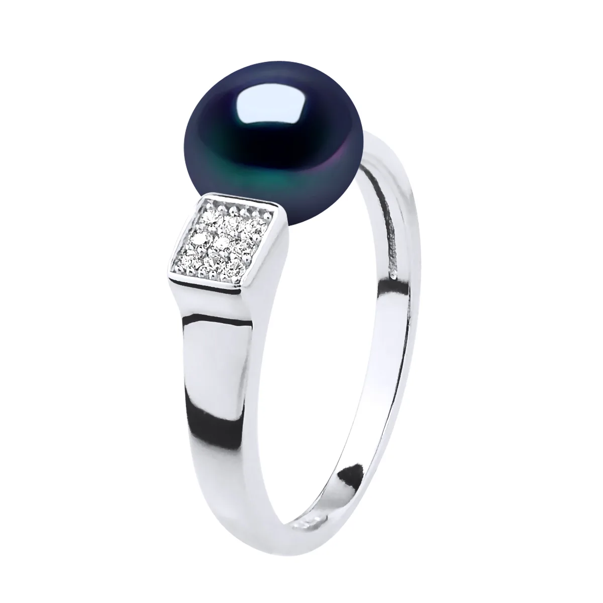 Ring Rush Echte zoetwaterparels Ronde 9-10 mm - Quality AAAA + - COLORI BLACK TAHITI - effenen zirkoonoxide - Verstelbare vanaf maat 48 Grootte 62-925 duizendste rhodium - 2 jaar garantie op fabricagefouten - geleverd in een presentatiekoffer met certificaat van echtheid en een Internationale Garantie - Al onze juwelen zijn gemaakt in Frankrijk.