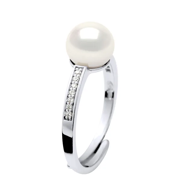 Ring True Gekweekte Pearl Zoetwater 7-8mm Button - Quality AAAA + - COLORI NATURAL WHITE - Bestrating Jewelry zirkonium oxides - Verstelbare vanaf maat 48 tot Size 62-925 duizendste rhodium - 2 jaar garantie op fabricagefouten - Wordt geleverd in een presentatie geval met een certificaat van echtheid en een Internationale Garantie - Al onze sieraden zijn in Frankrijk