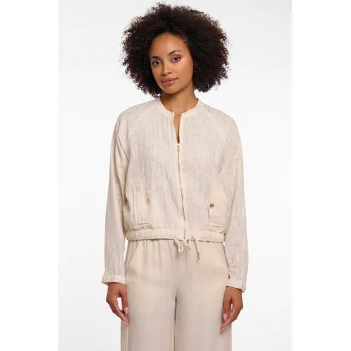 Ga voor een lichte, moderne laag met dit beige dames bomberjack van Rino & Pelle. De korte lengte en rechte mouwen geven een eigentijds silhouet, terwijl de ronde hals zorgt voor een rustige, vrouwelijke uitstraling. De all over print voegt subtiele structuur toe, waardoor deze jas direct iets speciaals krijgt zonder te opvallend te zijn.Details die je elke dag terugpakt Korte bomberstijl die mooi valt op de heupen All over print in een zachte beige kleur voor een rustige, moderne look Gemaakt van 80% viscose en 20% polyamide, met een soepele, comfortabele touch Ronde halslijn die fijn combineert met tops, T-shirts en blouses Lange, rechte mouwen voor net dat beetje extra warmte in het voorjaar Zakken voor, handig om je telefoon of sleutels bij de hand te houden Onderdeel van de boutique collectie, met aandacht voor mooie detailsLichte jas voor het voorjaarDeze jas is ideaal voor lentedagen waarop je een extra laag nodig hebt. Draag het bomberjack open over een eenvoudig T-shirt met je favoriete jeans, of combineer het met een pantalon voor een nettere look. De neutrale beige tint laat zich makkelijk stylen met zachte pastels en warme natuurtinten.Rino & Pelle: eigentijdse outerwearRino & Pelle staat bekend om moderne jassen met een stijlvolle, toegankelijke uitstraling. De collecties combineren draagbare ontwerpen met verfijnde details, zodat je er in het dagelijks leven verzorgd uitziet zonder in te leveren op gemak.Een lichte, stijlvolle laag die je garderobe klaar maakt voor het nieuwe seizoen.