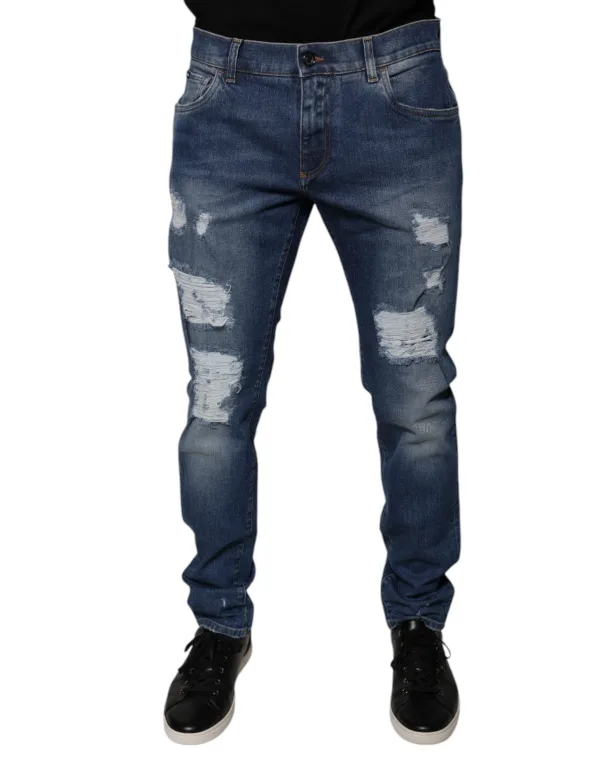 Stap naar buiten, val op en ervaar je eigen stijl. Deze Dolce & Gabbana jeans bieden een chique, casual uitstraling met een flatterende slim fit. De premium katoenen denimmix zorgt voor een comfortabel gevoel, terwijl de authentiek gescheurde details een edgy vibe toevoegen. Geniet van de gemakkelijk te onderhouden constructie, waardoor deze jeans een duurzame en onderhoudsvriendelijke aanvulling op je garderobe zijn. Perfect voor weekendavonturen of stijlvolle avonden uit, deze jeans tillen moeiteloos je dagelijkse stijl naar een hoger niveau. Omarm de perfecte mix van comfort en high-end mode.