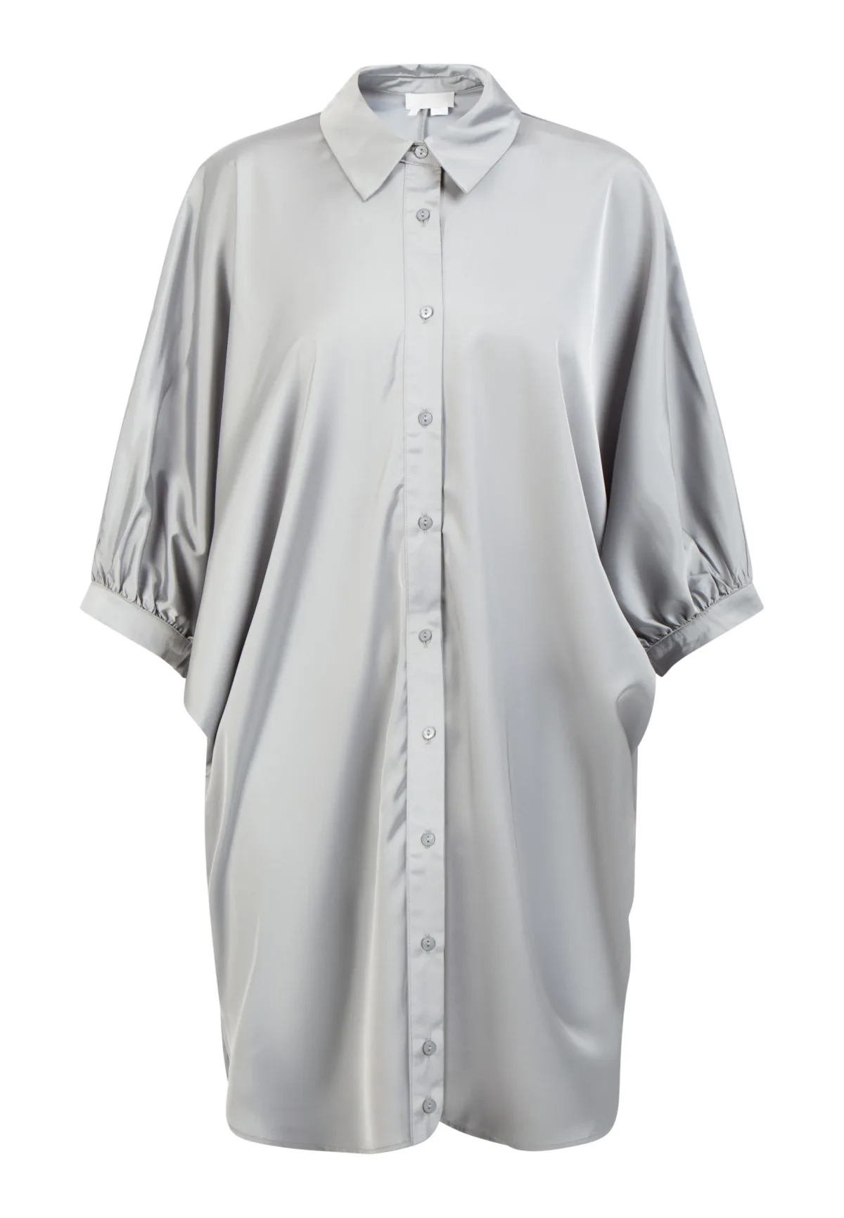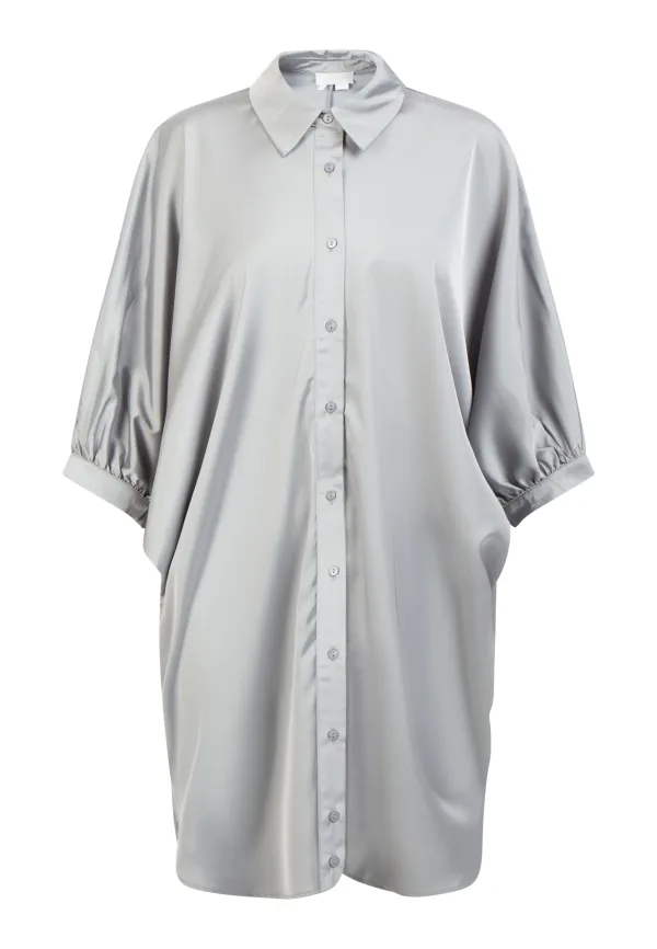 Zijdeachtige glans en een modieus los silhouet geven deze lange blouse van RISA veel karakter. Naast de knoopsluiting met overhemdkraag zijn het vooral de mouwen die de blouse zijn ponchoachtige stijl geven. Draag met een slanke broek, jeans of legging voor een casual zomerlook.