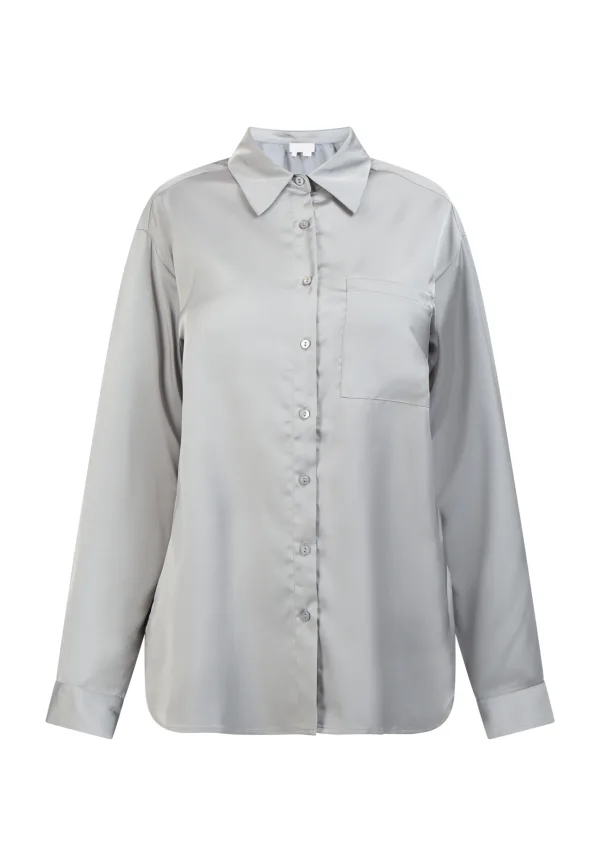 Deze klassieke blouse van RISA heeft een minimalistisch design. Het zijdeachtige, glanzende materiaal voelt aangenaam licht aan en begeleidt u van dag tot avond. De elegante look wordt afgerond met wijde mouwen, een borstzakje en 1-knoops manchetten.