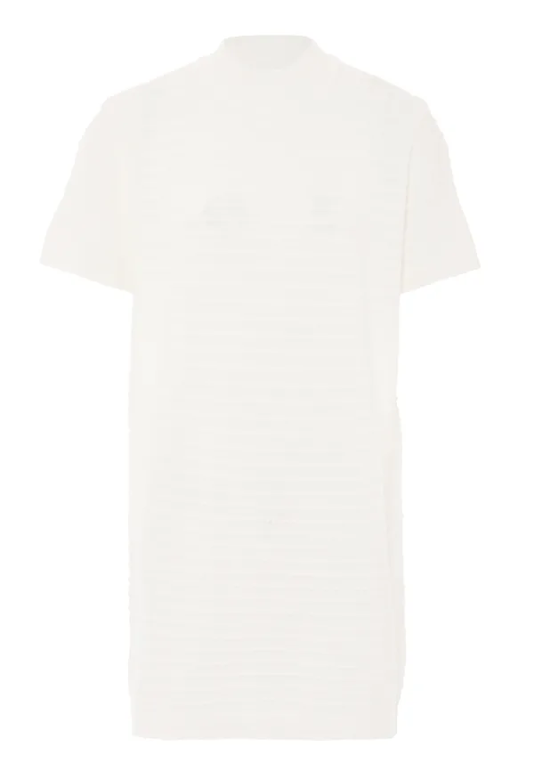 Dit T-shirt met korte mouwen heeft een structuurpatroon, een geribde ronde hals en een rechte zoom. De stof heeft een horizontale ribbelstructuur die een subtiel gestreept effect creëert. Met ingezette mouwen die ongeveer tot halverwege de bovenarm reiken, biedt dit overhemd een normale pasvorm voor veelzijdige vrijetijdskleding.