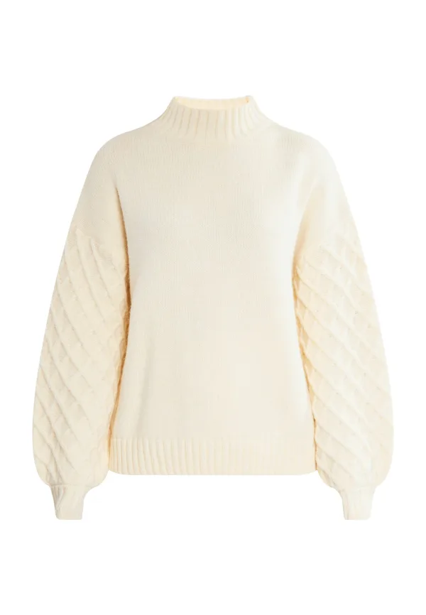 Geen voering/geen voering, geen vulling De wijde trui van RISA is een onderscheidende basic voor iedere dag. De zachte garenmix heeft een losse pasvorm met een grof gebreid patroon op de mouwen. Een geribde opstaande kraag, overlappende schouders en geribde manchetten ronden het harmonieuze totaalbeeld af. Gebreide trui