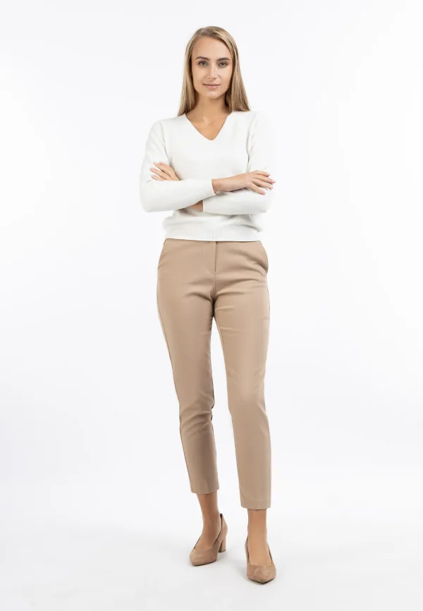 Deze wolwitte fijngebreide trui van RISA zal u bekoren met zijn klassieke silhouet. Hij scoort ook met zijn vrouwelijke V-hals en fijn geribde boorden. Gemaakt in Italië, garandeert de zachte garenmix met viscosegehalte een hoog draagcomfort.