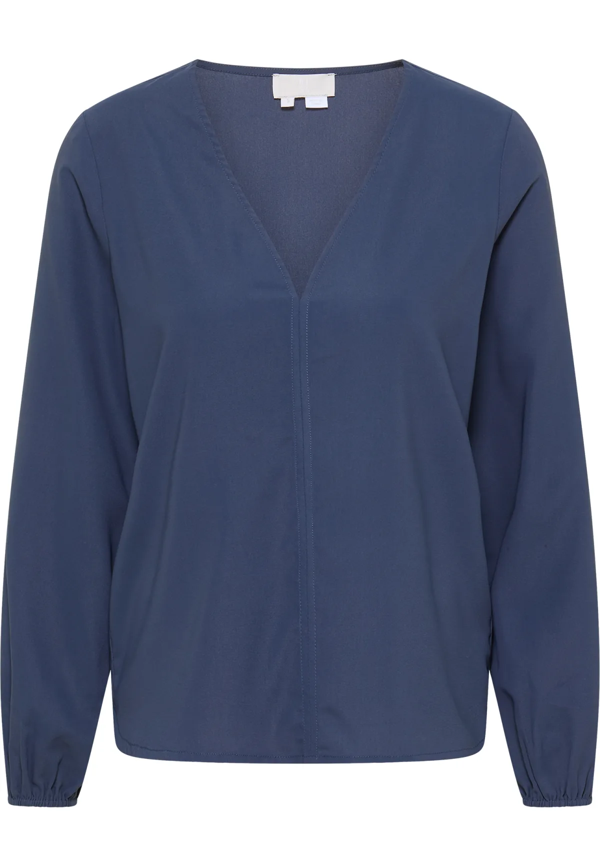 Deze klassieke blouse van Dreimaster Klassik is een onmisbare basic. Het heeft een optimale snit en het materiaal maakt het een must-have voor je garderobe. Door de vrouwelijke V-hals en de eenvoudige geribde boorden is hij makkelijk te combineren.