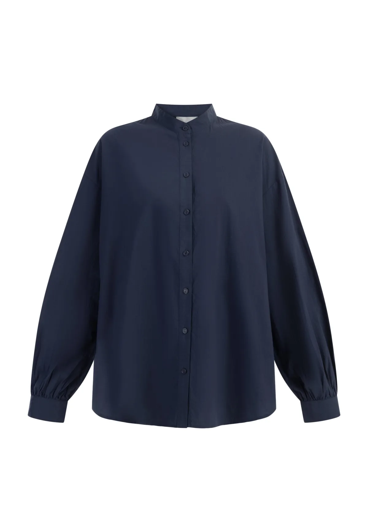 RISA presenteert dit overhemd van puur katoen in een casual, wijde oversized look. Het minimalistische ontwerp met een kleine opstaande kraag en een doorlopende knoopsluiting is typisch voor het label. Het overhemd is afgerond met overgesneden schouders en lange mouwen met plooien aan de manchetten.