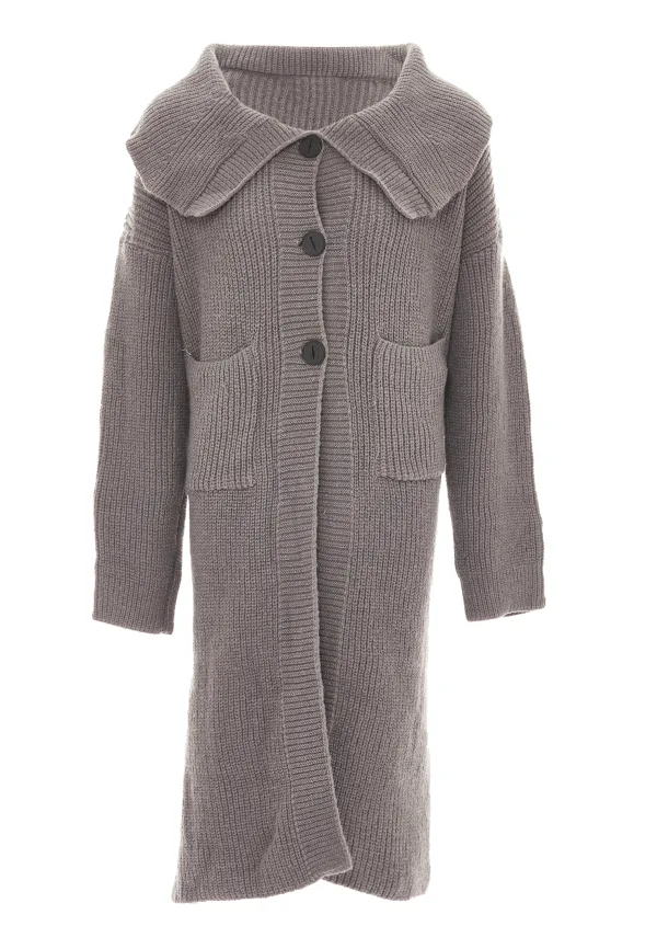 Breid je wintergarderobe uit met dit gebreide kledingstuk dat de grens tussen jas en vest vervaagt. Met een brede kraag en grote knopen aan de voorkant straalt hij klassieke charme uit. Met praktische opgestikte zakken op heuphoogte en lange mouwen biedt dit kledingstuk zowel stijl als functionaliteit. De dikke gebreide stof belooft warmte, terwijl het casual silhouet een casual touch aan elke outfit toevoegt.