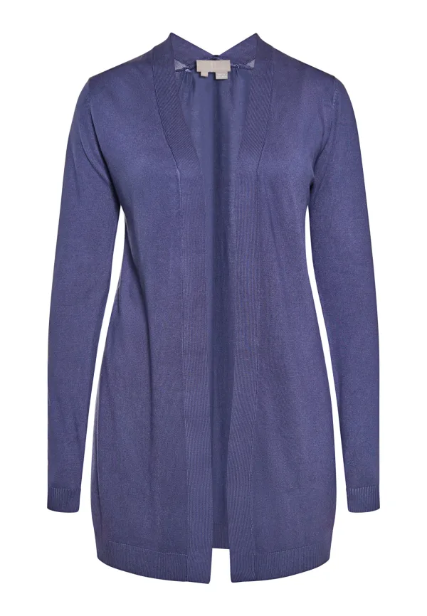 Maak kennis met een fijngebreid open vest met geribde details langs de manchetten, zoom en opening aan de voorkant. Dit gebreide vest heeft lange mouwen en een relaxte pasvorm voor een stijlvolle look die geschikt is voor op kantoor. De rechte zoom en de lange snit met natuurlijke drapering dragen bij aan de moeiteloze charme, waardoor het een ideale aanvulling is op je garderobe. Vest