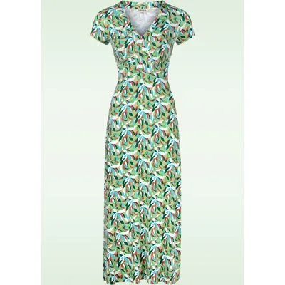"Never be afraid of colour!'' Deze vrolijke maxi jurk is uitgevoerd in een stretchy en zachte, Ecovero viscosemix in groen voorzien van een kleurrijke, grafische print. * V-halslijn * Plooitjes bij de buste * Korte mouwtjes * Geen rits of knopen; aantrekken en ready to go! * Valt bij een lengte van 1,70 m tot op de enkel