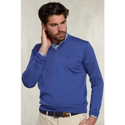 River Woods Basic Merino V-neck Pullover Toeareg Blue