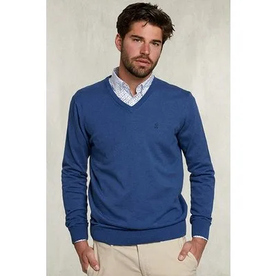 River Woods Basic V-neck Pullover Deep Blue Mix Blue