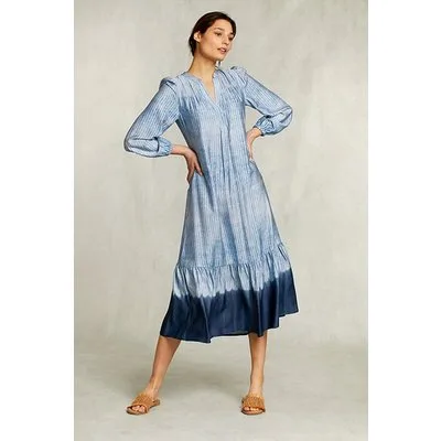 River Woods Blue Long Ruffled Tie-dye Dress Blue
