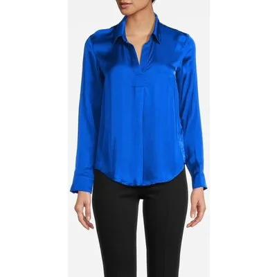 River Woods Blue Uni Satin Blouse Long Sleeves Blue