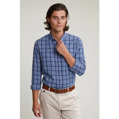River Woods Custom Fit Checked Shirt Blue/white