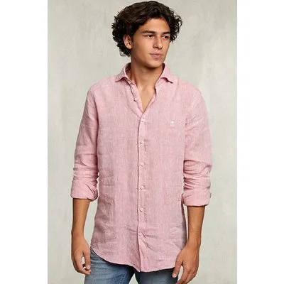 River Woods Custom Fit Linen Shirt Peach Pink Prijzen