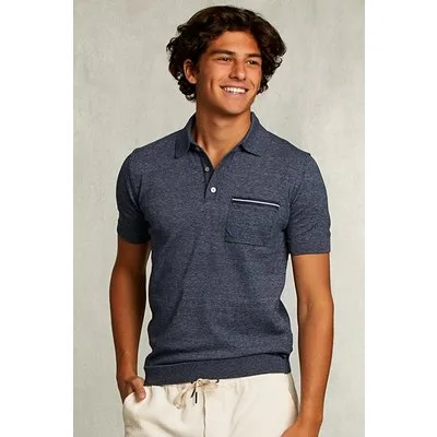 River Woods Custom Fit Pima Cotton Sweater Polo Collar Blue Moon Mix Blu