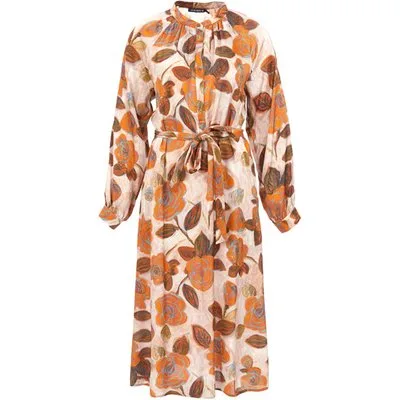 River Woods Dress Frownced Neckline Ls Brown Prijzen
