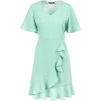 River Woods Dress Volant Front & Sleeve Green Prijzen