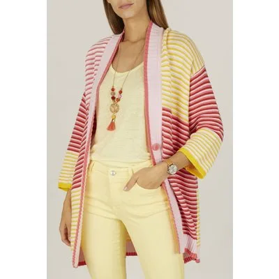 River Woods Long Multicolored Cardigan In Pink Prijzen