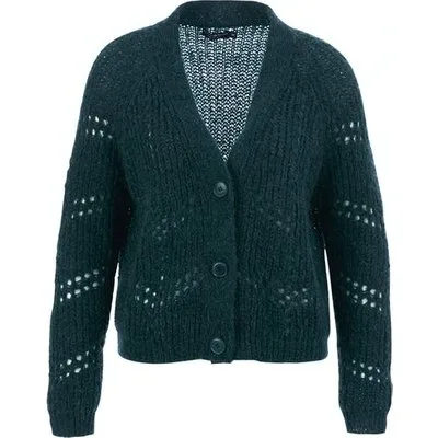 River Woods Loose V-neck Ajour Cardi Ls Green Prijzen